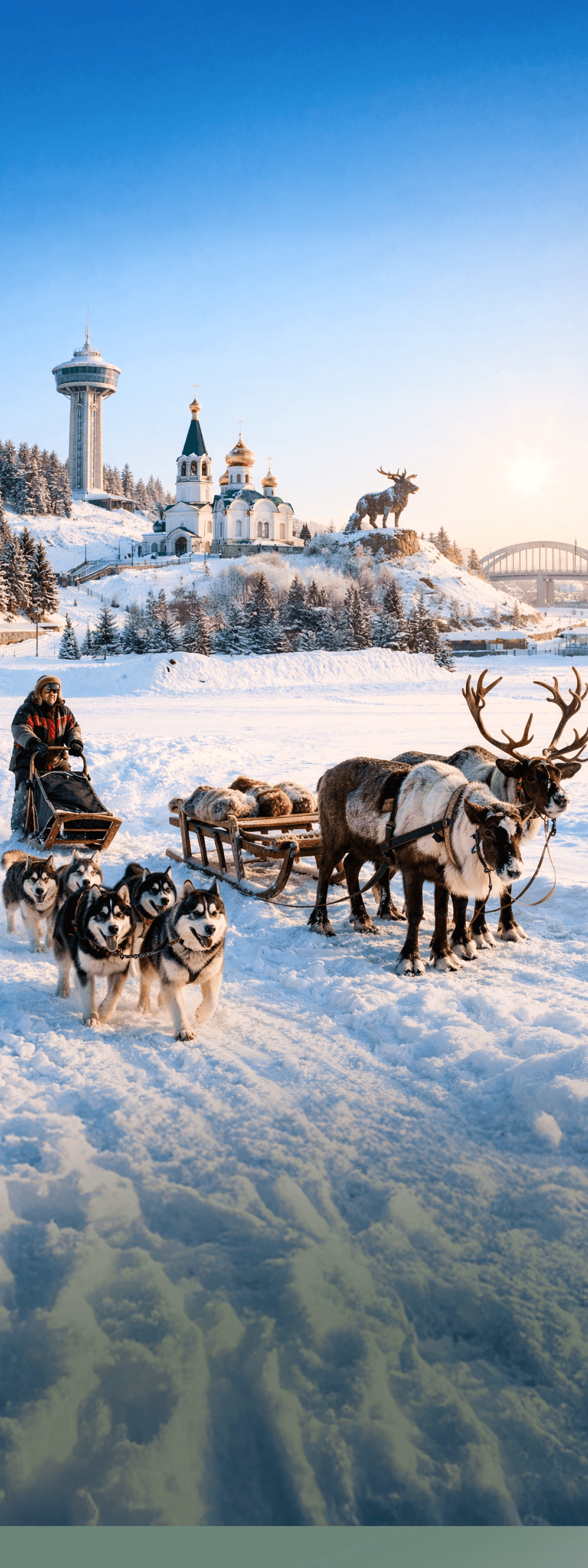 Встреча в Сургуте, трансфер в лесотундру к хантыйскому стойбищу: олени, чум, аркан, рыбалка, костюмы, кухня и ужин от шефа.